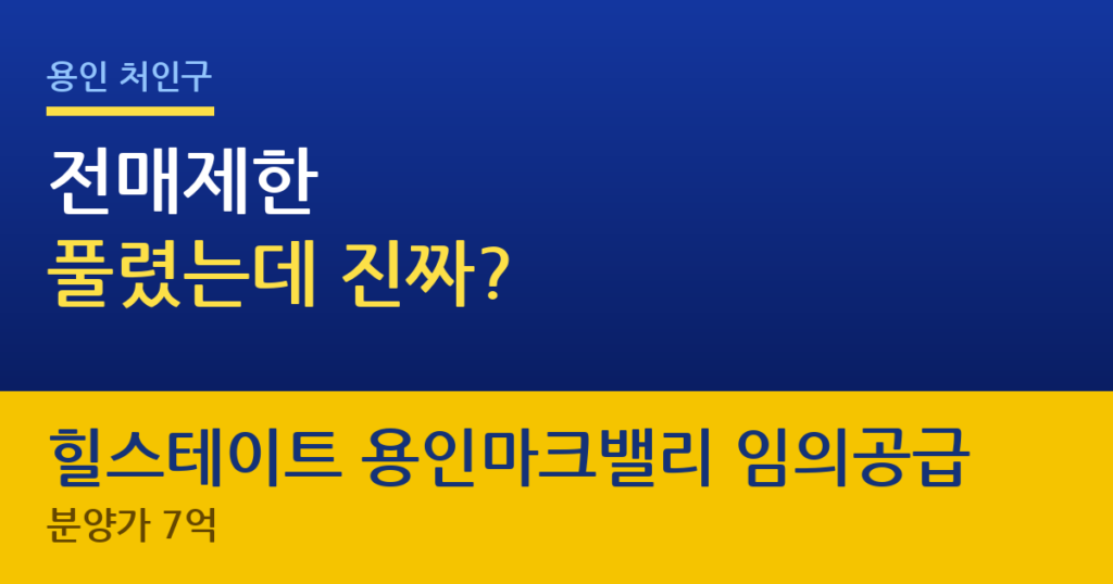 용인 처인구 힐스테이트 용인마크밸리 임의공급 찾아보고 계시는군요! 이미 분양된 단지의 미분양 잔여세대 7세대를 임의공급으로 내놓은 건데, 전매제한 기간이 지나서 당첨되면