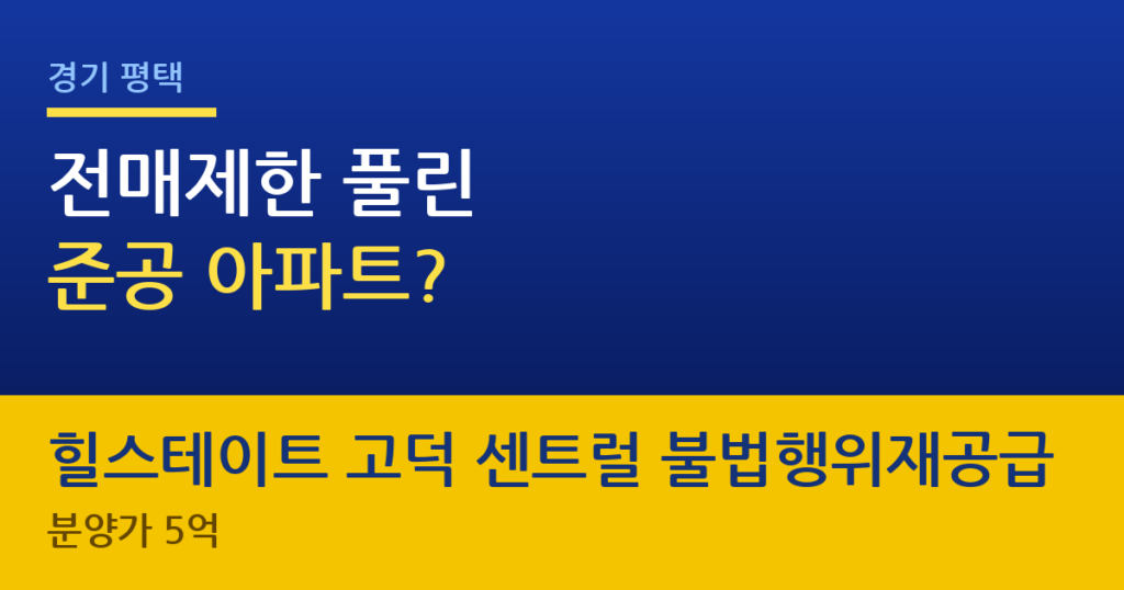 경기 평택 힐스테이트 고덕 센트럴 불법행위재공급 – 5억대 준공단지, 전매가능