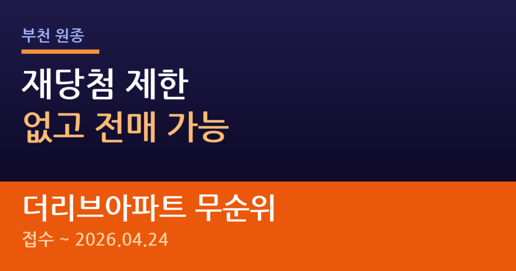 부천시에 거주하면서 무순위 청약 기회를 찾고 계신가요? 원종 더리브아파트가 해약 물량으로 1세대 임의공급을 진행해요. 재당첨 제한도 없고 과거 당첨 이력도