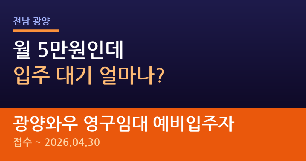광양와우 영구임대주택 예비입주자 모집 소식을 찾아오셨군요. 이미 2021년 8월에 입주를 시작한 단지라 공가 발생 시에만 입주가 가능한 상황이에요. 월 임대료가